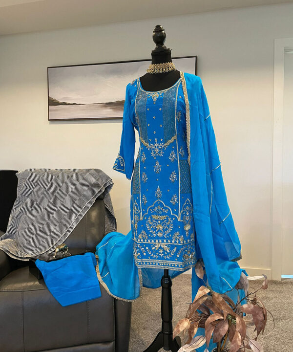 Be the first to review “Blue Embroidered Punjabi Suit with Dupatta”