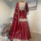 The dupatta, draped gracefully over the mannequin, enhances the outfit with its soft maroon fabric adorned with small embroidered flowers and a fine golden border. The fabric flows effortlessly, adding a graceful touch to the overall presentation. The mannequin is accessorized with a traditional gold choker necklace that complements the outfit’s aesthetic.