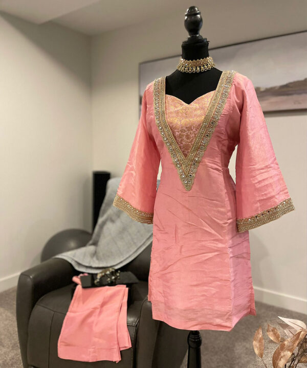 Be the first to review “Peach Punjabi Suit Displayed on Mannequin”